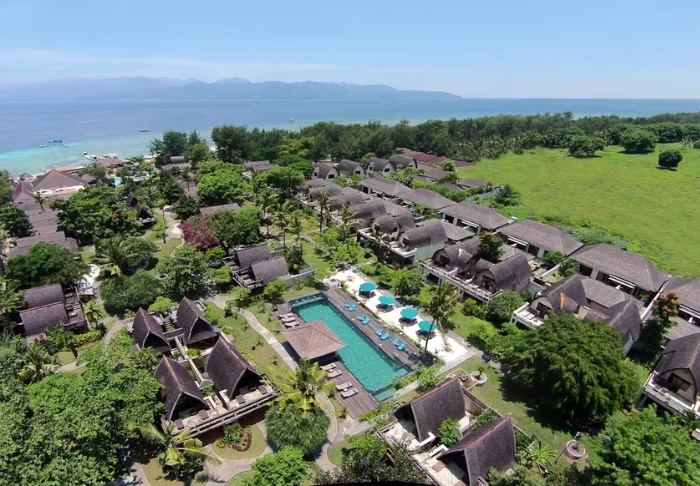 Hotellet är trevligt och har en härligt avslappnad atmosfär. Det är byggt i äkta indonesisk stil med traditionella lumbungstugor och bungalower.