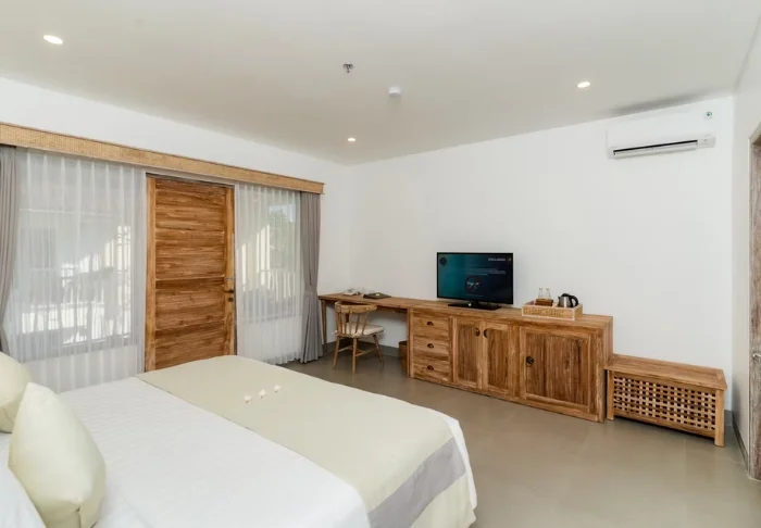 Vila Ombak har totalt 148 rymliga och smakfullt inredda rum med klassiska trämöbler och indonesisk konst. Alla rum är utrustade med wifi, aircondition, värdeskåp, minikyl, tv, telefon, gratis vatten på flaska samt kaffe- och tefaciliteter, så att du varje morgon kan starta dagen med en kopp kaffe eller te som du intar på din privata balkong eller terrass. Alla rum har även ett eget stort badrum med gratis toalettartiklar och hårtork.