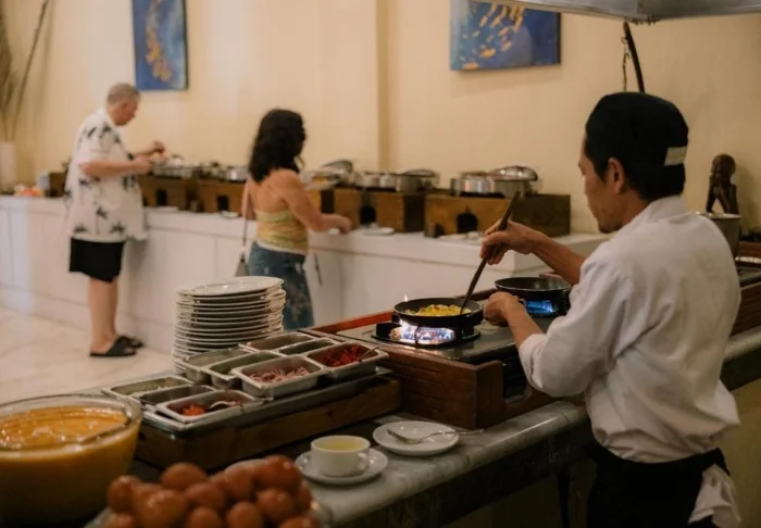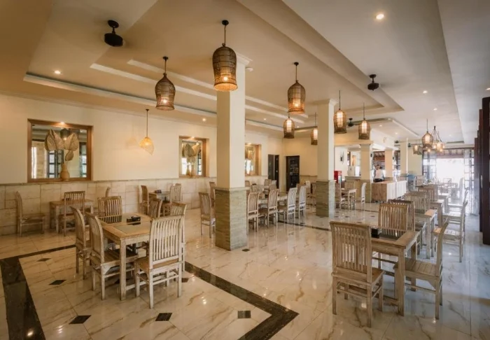 Hotellets huvudrestaurang, Seahorse Restaurant, har öppet från kl. 08.00 till kl. 23.00. På morgonen serveras bland annat färskt frukt, hemmagjord yoghurt, nybakat bröd, ägg och pannkakor. Till lunch och på kvällen serveras indonesiska och sydeuropeiska specialiteter, fisk- och skaldjursrätter samt olika grillade rätter.