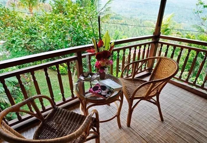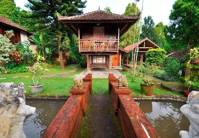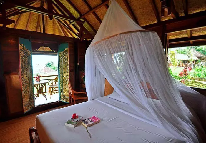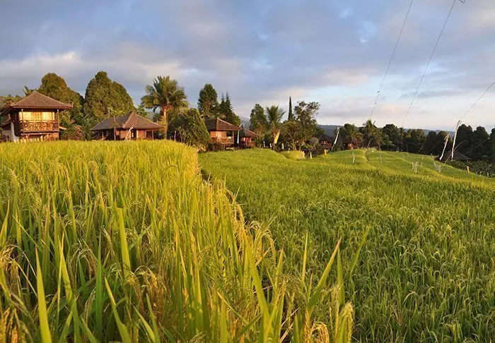 Du bor i en charmig bungalow, kallad “lumbung”, som ursprungligen var en gammal rislada. Alla bungalower är inredda i traditionell stil och har fina detaljerade träsniderier. Samtliga har sovrum med myggnät över sängen, badrum med antingen dusch eller badkar och en härlig balkong med en imponerande utsikt över berg och risfält. Det finns gratis wifi, men i gengäld ingen aircondition – det behövs nämligen inte i det tempererade höglandet.