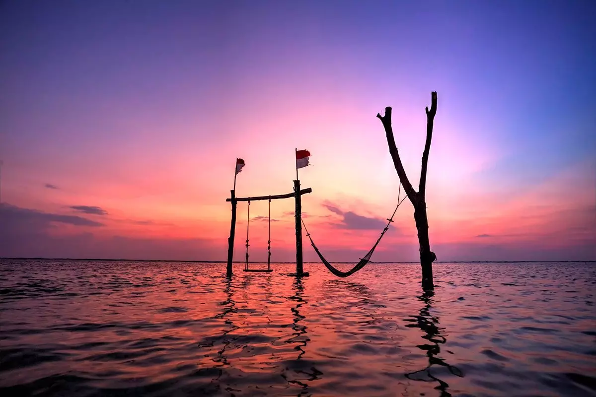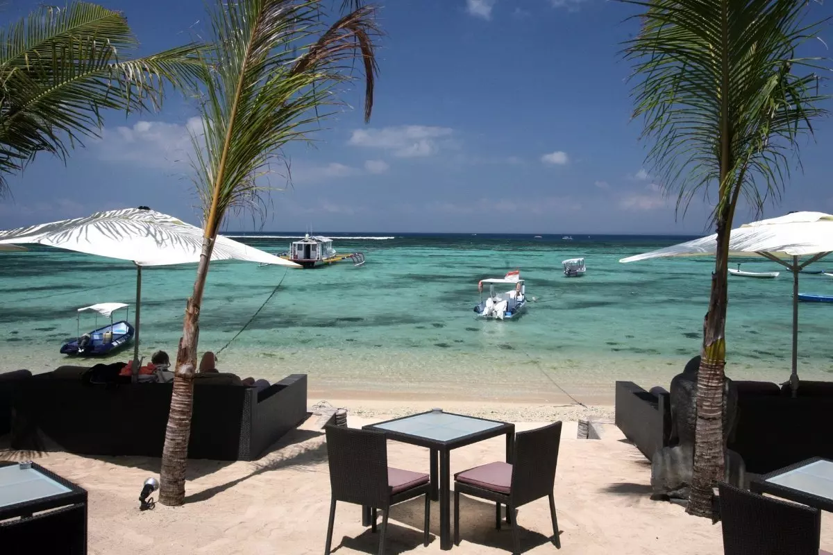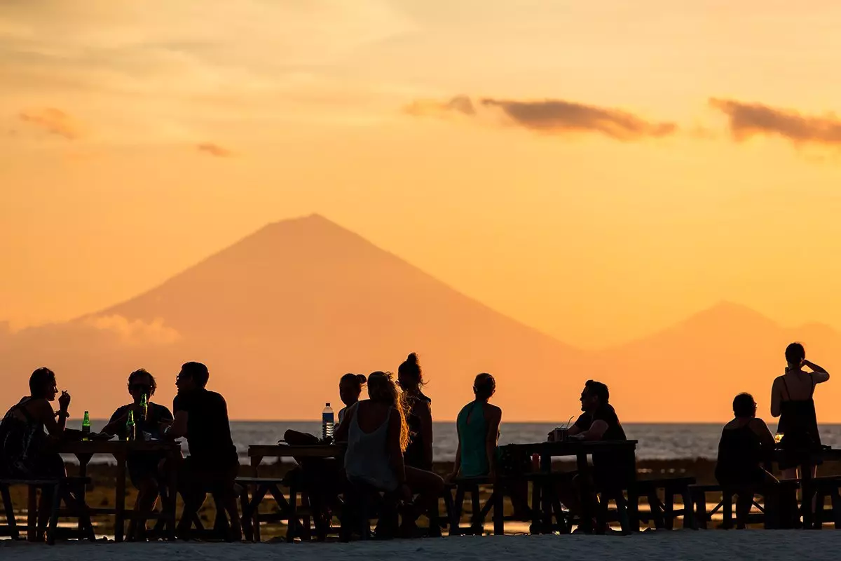 På dagen råder här en avslappnad atmosfär, och på kvällen är det fullt av liv och glad stämning på de många små restaurangerna och barerna. På öns västra sida kan du njuta av den vackra solnedgången över Bali och om du har tur och vädret är klart kan du se ända till vulkanen Gunung Agung.