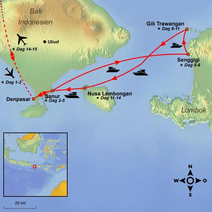 Resan tar dig med till fyra indonesiska paradisöar och det är upplagt för ren och skär avkoppling – det står dig nämligen fritt att själv bestämma tempot och aktiviteterna på dagarna. För dig som vill kombinera avkoppling med upplevelser finns det möjlighet att köpa tilläggsutflykter.
