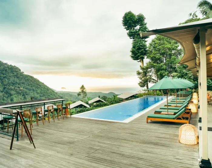 Efter besöket fortsätter du resan mot Manggis, där du tillbringar de kommande dagarna på Kaura Bali. Platsen ligger högt över en grön dal med utsikt över terrasserade risfält och Indiska oceanen. Här väntar dagar fyllda av ro, naturupplevelser och inblick i det lokala bylivet.