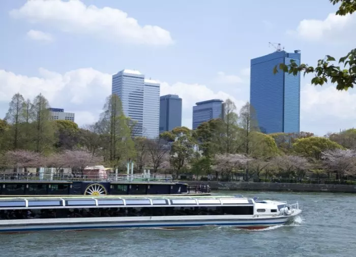 Från Osakaborgen är det en kort promenad till floden, där du går ombord på Aqualiner-båten för en timmes sightseeing på Osakas vattenvägar.