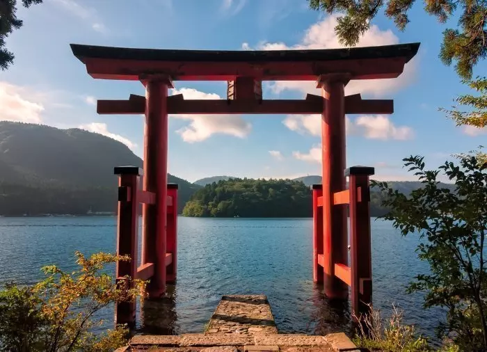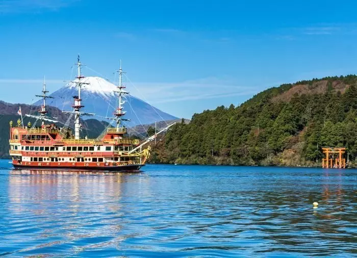 Nere vid Togendai Station, går du ombord på en båt och åker över den pittoreska sjön Ashi. Ett vulkanutbrott för 3 000 år sedan skapade den krater, som i dag utgör denna vackra kratersjö. Från båten njuter du av den vackra utsikten över vattnet och de omkringliggande bergen som ramar in sjön.