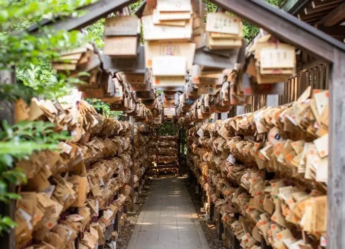 Du besöker även Hikawa-helgedomen som grundades år 541. Helgedomen är tillägnad fem gudar, varav två även var ett par. Hikawa är därför ytterst populär bland unga japaner. Pojk-/flickvänner och gifta kommer för att be om kärlek för deras förhållande och äktenskap. Gå in genom helgedomens 15 meter höga torii-port och in via korridoren där det hänger små träplattor kallade ema. På dessa har besökare skrivit ner sina önskemål. Om sommaren kan du lyssna på de avkopplande vindklockorna.