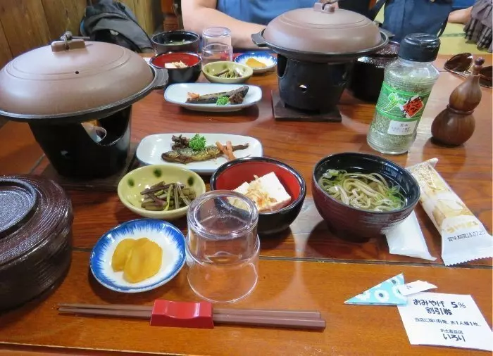 En god lunch, gjord på lokala råvaror, ingår i priset och avnjuts i ett av husen som gjorts om till restaurang.