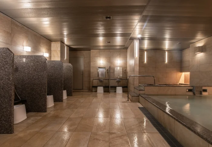 Efter en dag fylld med upplevelser i Kanazawa kan du koppla av i hotellets sentō. Här väntar varma bad med silkeslent vatten, där ultrafina bubblor främjar känslan av avslappning och välmående. Du kan också njuta av det härliga bubbelbadet som lindrar trötta muskler.