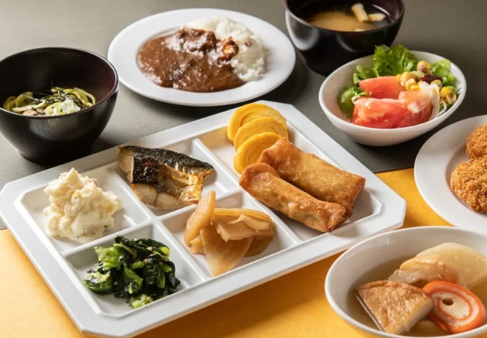 Hotellets restaurang erbjuder en frukostbuffé bestående av både japanska och västerländska rätter.