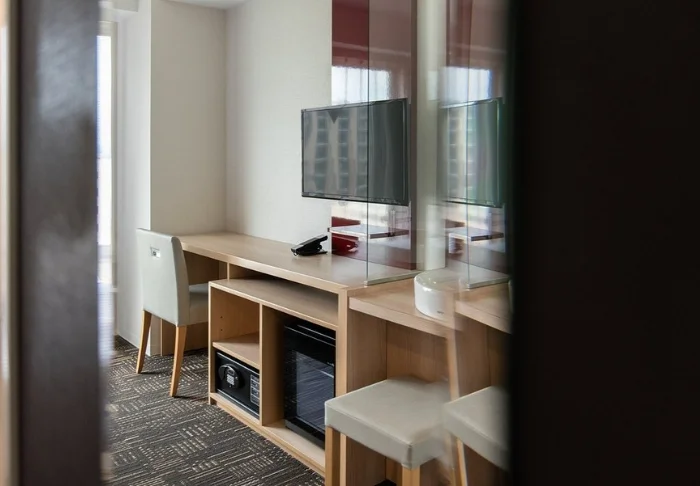 Du bor på ett standard-rum med ljus och behaglig inredning samt moderna bekvämligheter. Här finns wifi, aircondition, TV, värdeskåp, minikylskåp, vattenkokare för te och kaffe samt tillgång till en vattenautomat med filtrerat vatten i korridoren. Sängarna är bekväma, och du kan välja mellan både mjuka och fasta kuddar för en god natts sömn. Badrummet är utrustat med washlet-toalett, hårtork, kostnadsfria toalettartiklar och en separat dusch med regndusch.