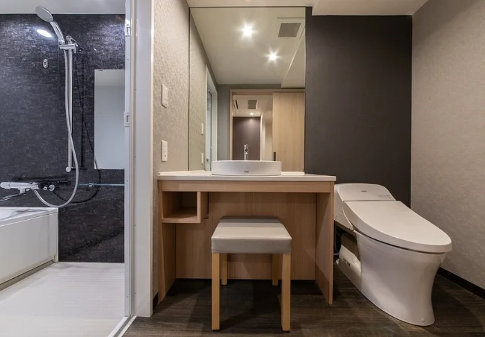 Du bor som standard i ett modernt och elegant Standard-rum, inrett i varma färger med minimalistiska japanska detaljer. Här finns allt du behöver – bland annat wifi, aircondition, minikyl, TV och vattenkokare – så att du kan börja morgonen med en nybryggd kopp te eller kaffe. Badrummet är praktiskt utformat med washlet-toalett, badkar med dusch, hårtork, tofflor, japansk pyjamas och ett urval av badprodukter.