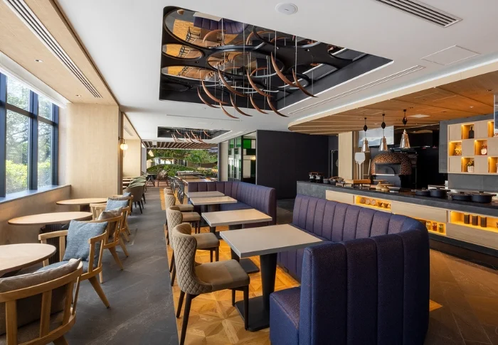 Under måltiderna bjuder hotellets restaurang på en internationell gastronomisk upplevelse där det japanska, kinesiska och västeuropeiska köket möts i fin harmoni. Menyn följer säsongerna och erbjuder en varierad frukost med lokala råvaror, färska juicer och ägg från frigående höns. Under dagen kan du dessutom njuta av ett glas vin eller en kopp nybryggt kaffe eller te i lobbyns rofyllda lounge.