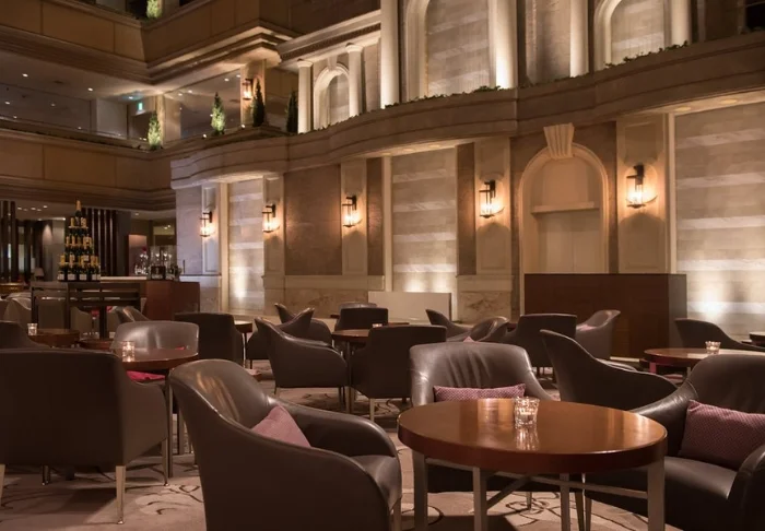 Kulinariska upplevelser väntar i hotellets restauranger där du kan välja mellan fransk elegans, traditionell japansk matkultur eller kantonesiskt kök. Frukosten serveras som buffé med allt från franska bakverk och nygjorda omeletter till japanska delikatesser och färsk frukt. Senare på dagen kan du besöka den stämningsfulla baren som erbjuder ett imponerande drinkutbud och en perfekt miljö för en trivsam kväll.