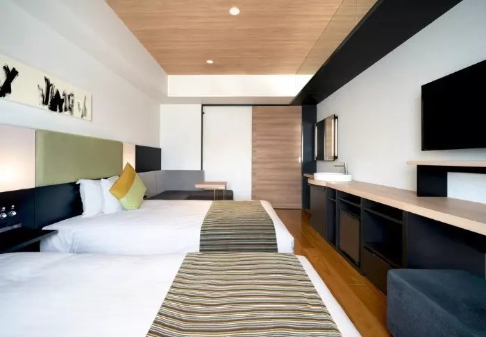 Rummen är rymliga och inredda i en japansk-västerländsk stil. De stora fönstren släpper in ett behagligt ljus, och sängarna erbjuder en god natts sömn efter en dag fylld med äventyr. Rummen är utrustade med aircondition, wifi, minikylskåp, värdeskåp och vattenkokare. Badrummen erbjuder både hårtork och toalettartiklar.