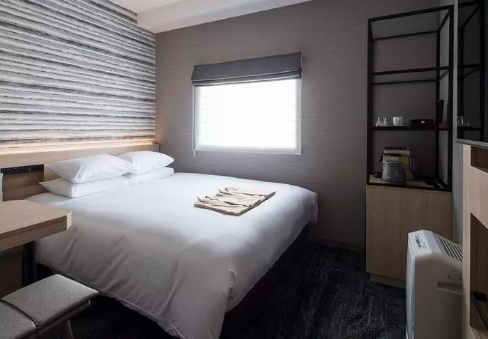 Hotellet har en modern och stilren inredning med varma toner och japansk minimalism. Standardrummen är praktiskt inredda och utrustade med allt du behöver efter en dag full av intryck – inklusive wifi, aircondition, kylskåp, TV och vattenkokare, så att du kan börja morgonen med en kopp grönt te eller kaffe. Badrummet är funktionellt och har både toalettartiklar och badkar, så att du kan koppla av efter en hektisk dag.