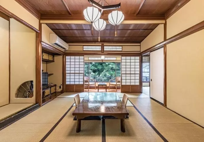Du sover i en traditionell futon-säng. Rummen har dessutom wi-fi, luftkonditionering, kylskåp, tv, eget badrum och vattenkokare, så att du kan njuta av en kopp grönt matcha-te vid det låga sidobordet.