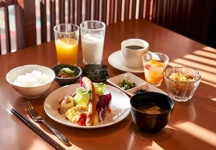 Restaurangen serverar en frukost bestående av både japanska och västerländska rätter.