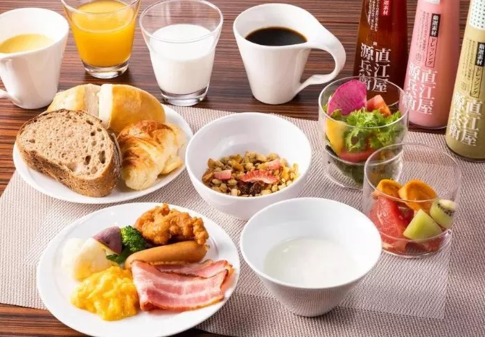 Innan dagens äventyr börjar kan du njuta av buffén i hotellets frukostrestaurang, där du kan välja mellan både europeiska och japanska rätter.