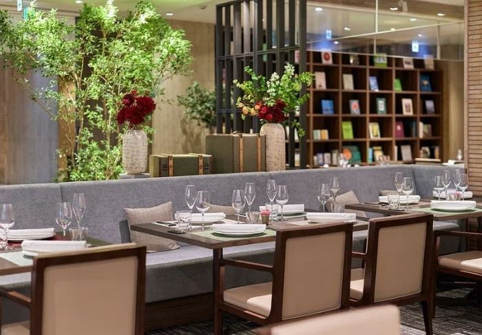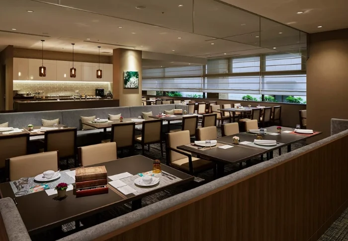 Under måltiderna bjuder hotellets restaurang på en internationell gastronomisk upplevelse där det japanska, kinesiska och västeuropeiska köket möts i fin harmoni. Menyn följer säsongerna och erbjuder en varierad frukost med lokala råvaror, färska juicer och ägg från frigående höns. Under dagen kan du dessutom njuta av ett glas vin eller en kopp nybryggt kaffe eller te i lobbyns rofyllda lounge.