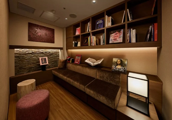 Hotellets bibliotekslounge och litterära hörn på varje våning inbjuder till stilla lässtunder med fritt val bland de cirka 1 500 böckerna som spänner över allt från japansk kultur och hantverk till konst och filosofi. Bland böckerna finns även en liten utställning av japanskt konsthantverk som hyllar landets unika kulturarv.