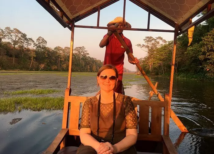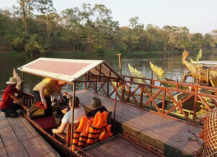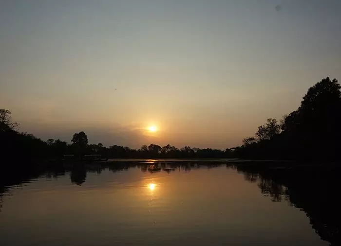 Lugnet sänker sig när du på ett avkopplande vis avslutar dagen med en mysig åktur i gondol för att njuta av solnedgången vid Angkor Thom med en liten förfriskning ombord. Du åker i den mycket breda vallgraven som omger hela Angkor Thom, med frodig växtlighet på båda sidorna. Det är här lokalborna tar sig ett kombinerat kvällsdopp och fisketur. Du hämtas på ditt hotell och körs sedan tillbaka igen efter gondolturen.