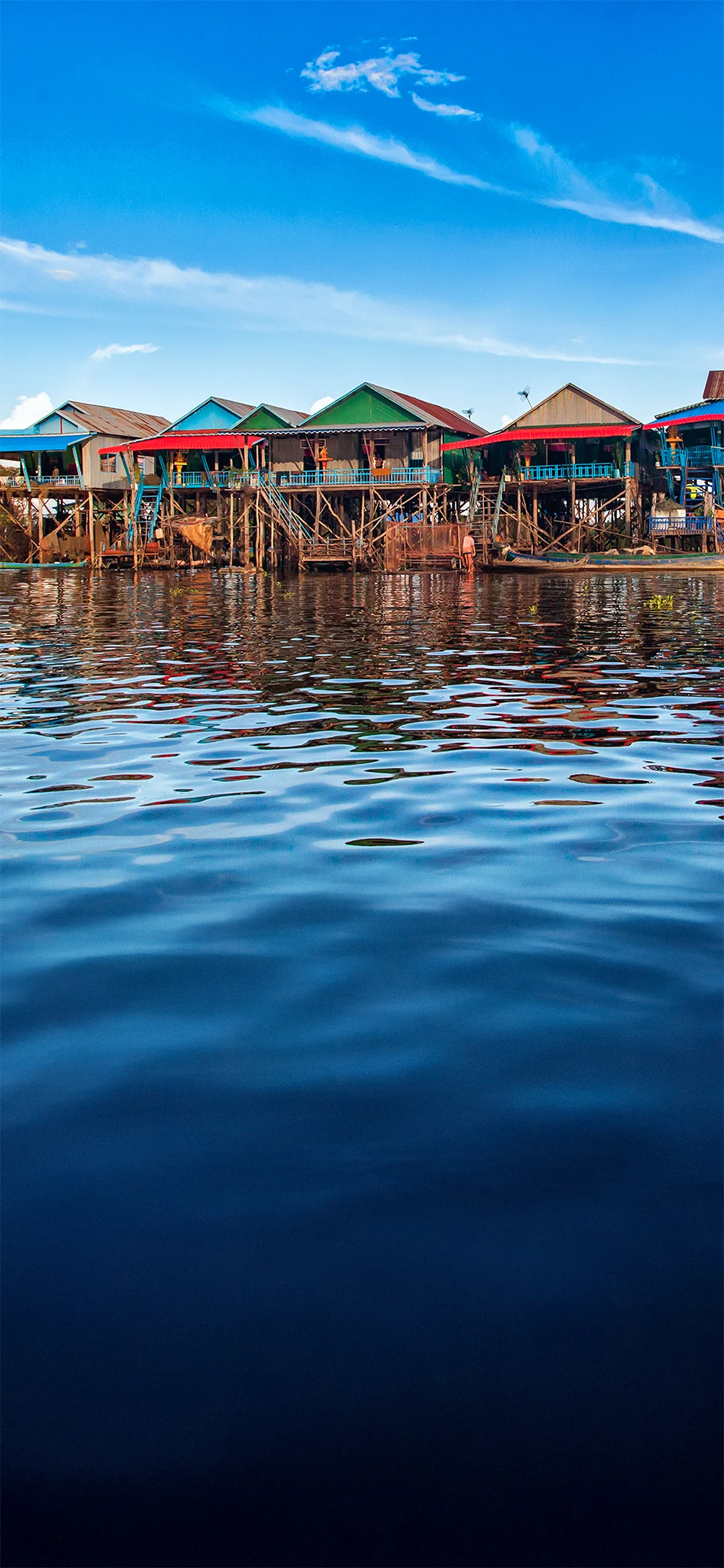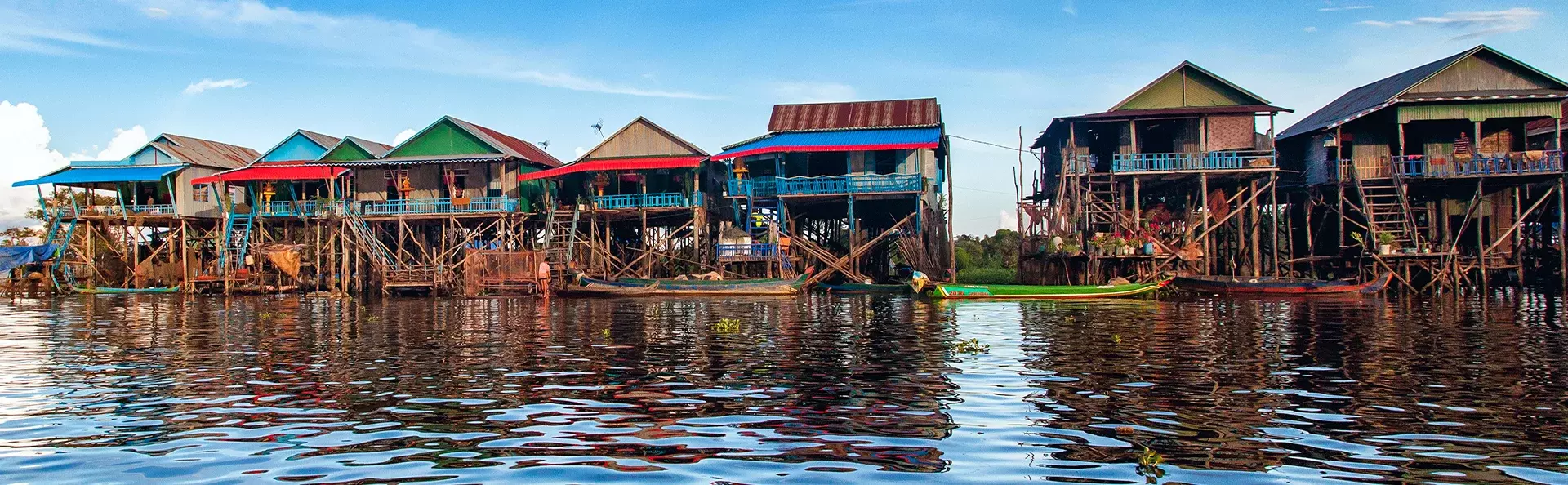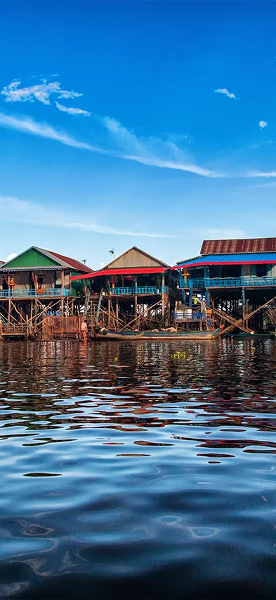 Du ankommer till brädden av Tonle Sap-sjön och går ombord på en båt, som tar dig till den flytande byn Kompong Phluk. Här får du på nära håll uppleva hur vardagslivet ser ut för de många familjerna, som primärt lever av fiske. Familjerna lever längs den södra brädden i färgrika hus, som står på långa pålar så att de klarar det höga vattenståndet under regnperioden då landsbyns små gator förvandlas till små kanaler. Under torrperioden med det låga vattenståndet kan du se de höga pålarna.