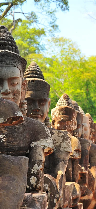 Vidare till ett av huvudtemplen, Bayon, där en imponerande syn väntar dig med ett otal leende Buddha-ansikten.