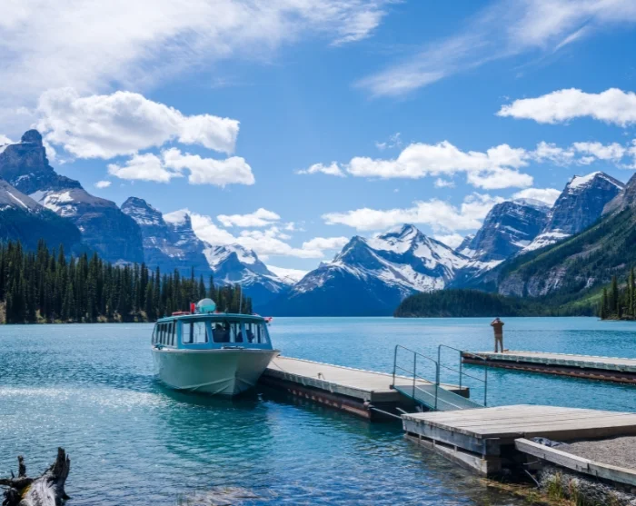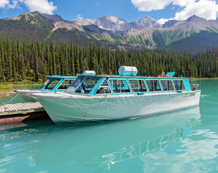 Följ med på en naturskön båttur på Maligne Lake, en av de vackraste och mest ikoniska sjöarna i de kanadensiska Klippiga bergen.