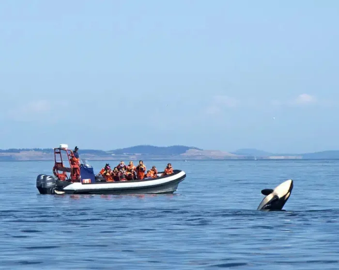 Följ med på en valsafari utanför Victoria, där engagerade marinbiologer guidar dig genom de rika vattnen i området för att uppleva det fascinerande djurlivet. Vattnen vid Juan de Fuca och Haro är hem för späckhuggare, knölvalar och – med lite tur – även vikvalar och gråvalar. Under högsäsongen, från april till oktober, är chansen att få se valar över 95 %.