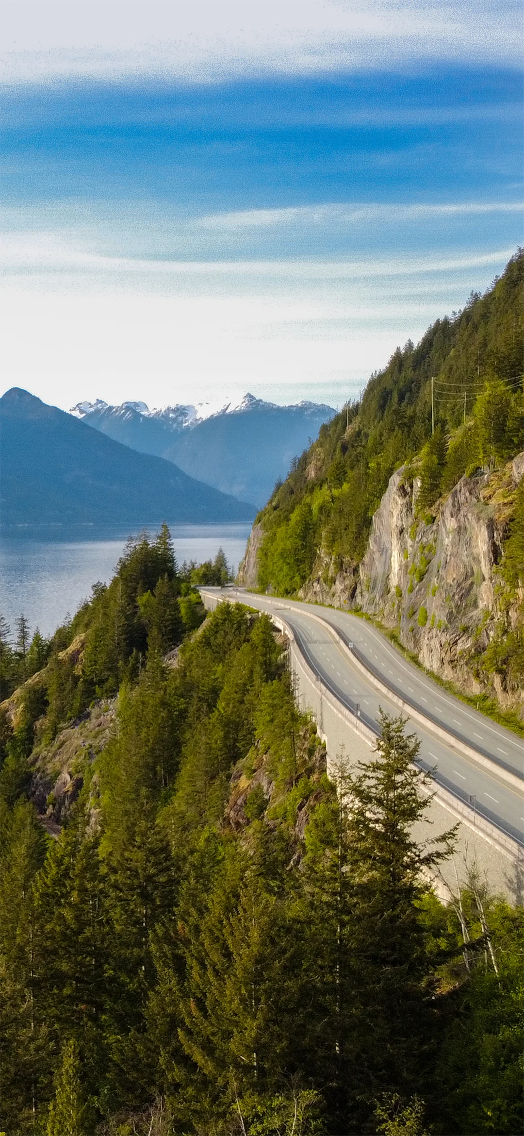 Även om du redan har kört på flera ikoniska vägar, så är dagens sträcka på knappt 1,5 timme inget undantag. Från Whistler kör du längs Highway 99 – även känd som ”Sea to Sky Highway”. Precis som namnet antyder möter du idag kontrasterna mellan hav och himmelhöga höjder, från Whistlers berg till djupa fjordar.