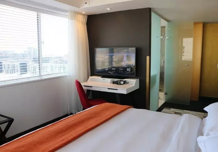 Hotellrummen är bland de allra största i staden och samtliga har egen balkong, Nespresso-maskin, platt-tv, badkar och utsikt över det pulserande livet i hamnen.
