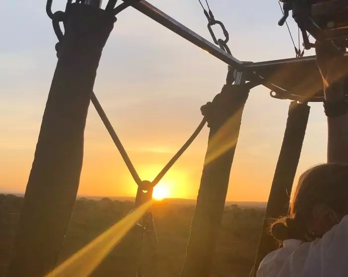 Det är avgång före soluppgång och efter avslutad flygtur väntar naturligtvis en champagnefrukost, som sig bör på en riktig ballongsafari!