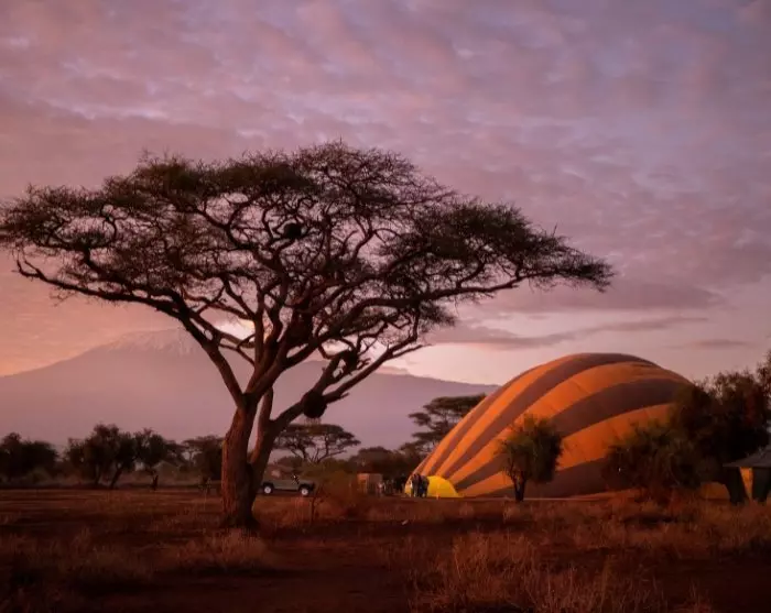 En ballongsafari i Amboseli nationalpark är något ganska unikt. Var annars kan du – svävande i en luftballong – ha utsikt över både elefanter och världens högsta fristående berg samtidigt?