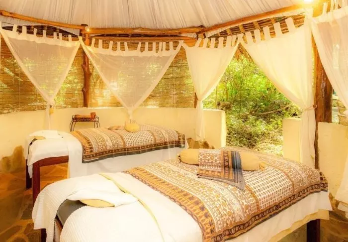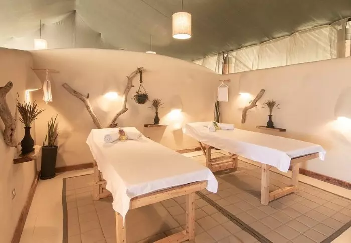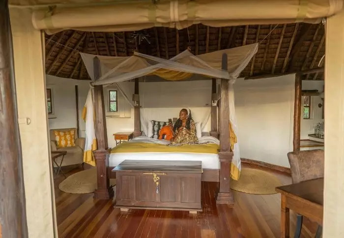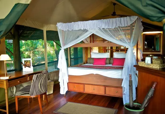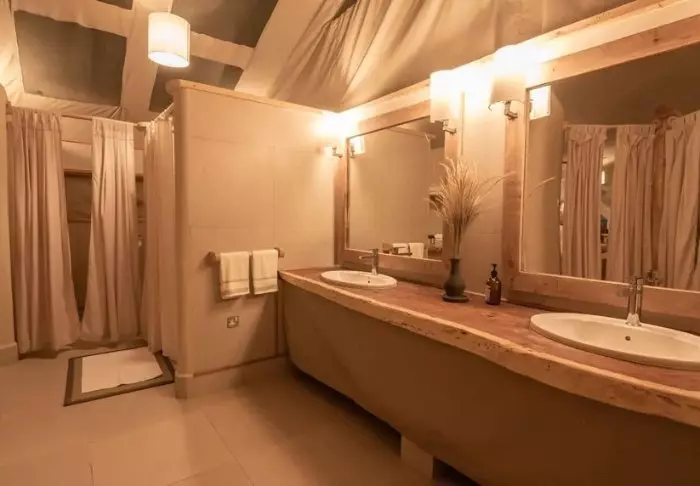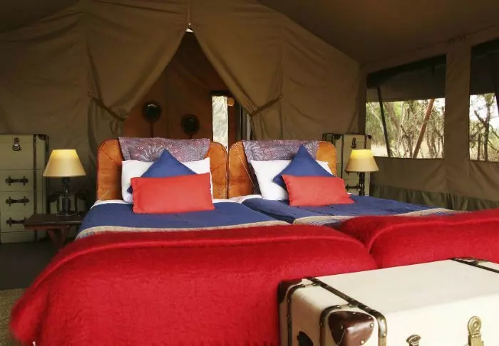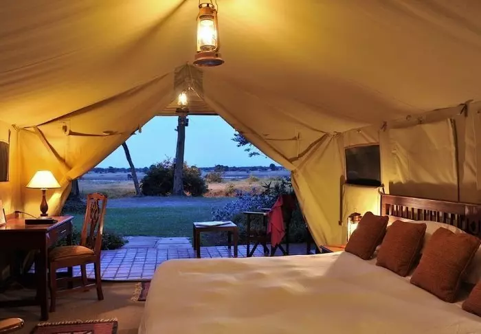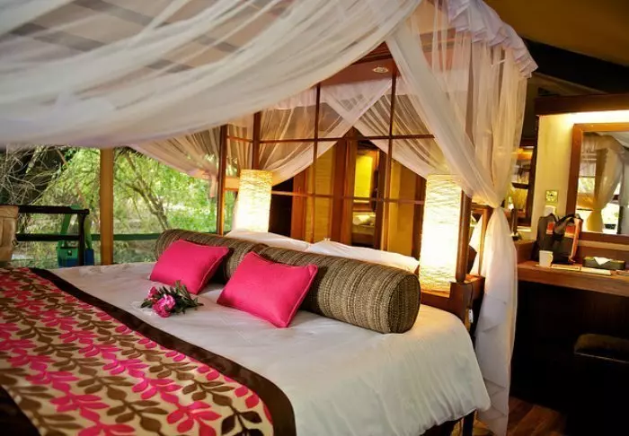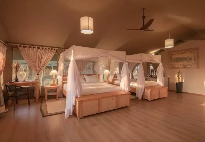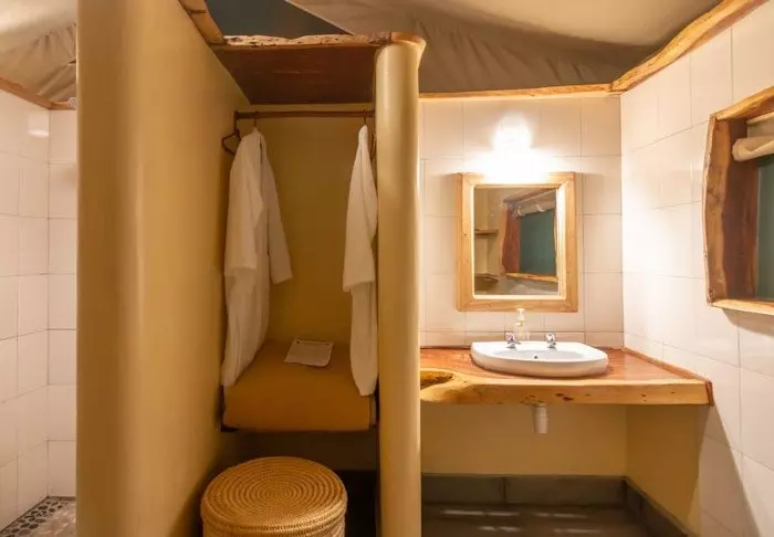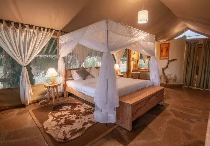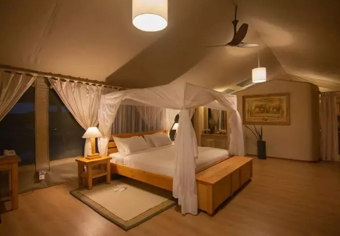 Här finns 73 tält i olika storlekar som är otroligt charmigt inredda. Tälten har delvis murade väggar till bland annat badrummet, och det är fast golv överallt. Sidorna och taket är dock gjorda av kanvas, så du får det bästa av två världar – ett tältrum mitt i den vackra afrikanska naturen!