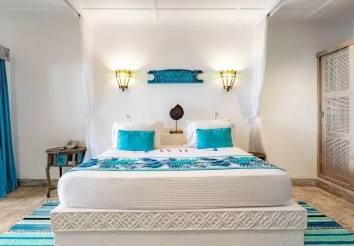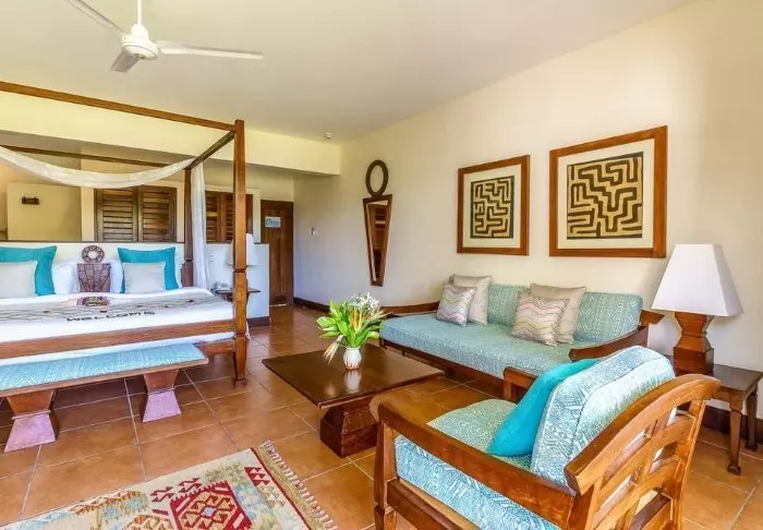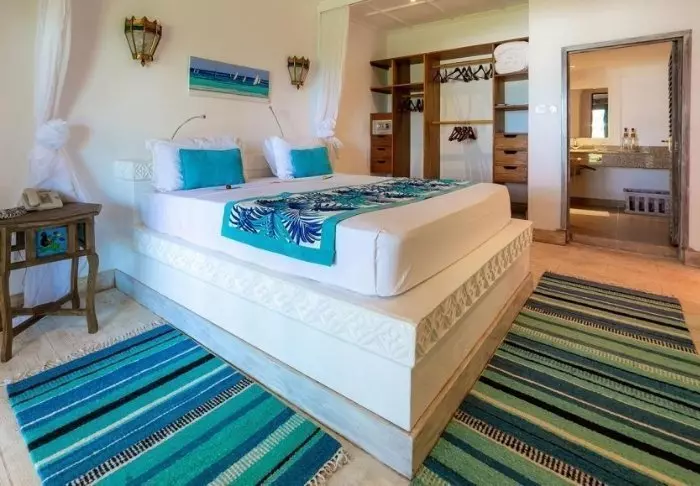 Alla rummen är unikt inredda med inspiration från traditionell swahilidesign. Alla rum har minibar, Wi-Fi, säkerhetsbox, luftkonditionering och myggnät över sängarna.