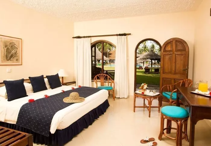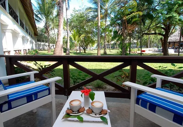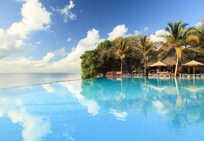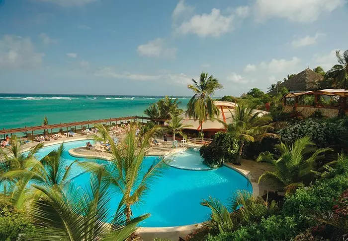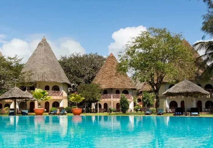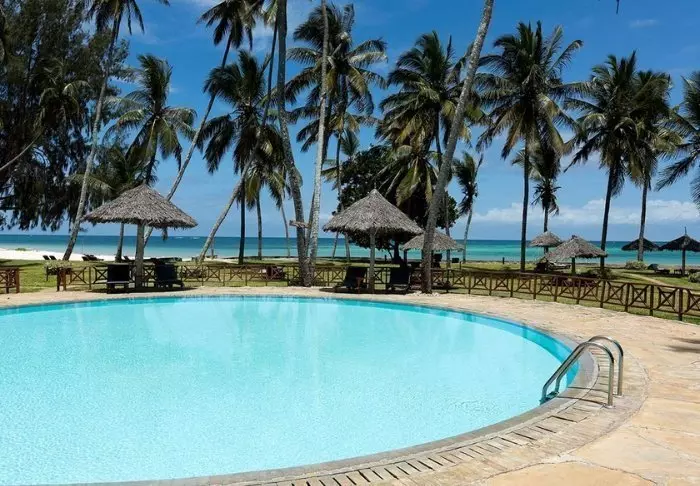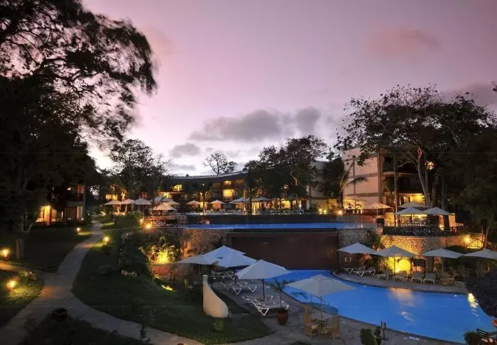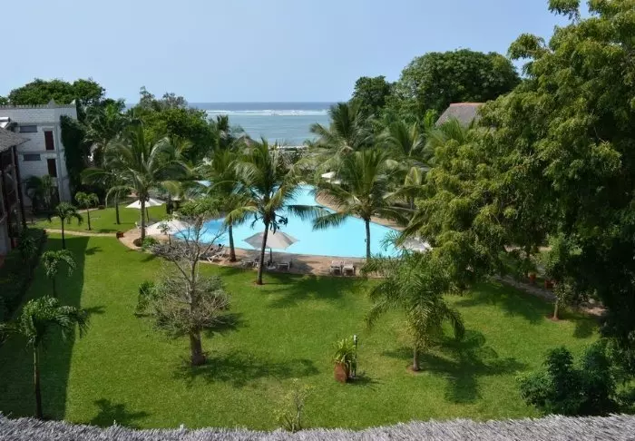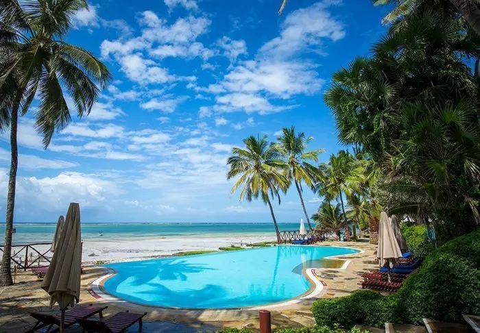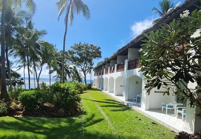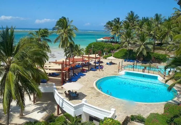 Resorten ligger vid en av världens vackraste stränder, den kritvita Diani Beach, och utsikten över Indiska oceanen är som tagen från ett vykort. Även från resortens 18-håliga golfbana har du utsikt över det turkosblå havet.
