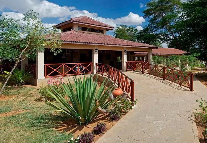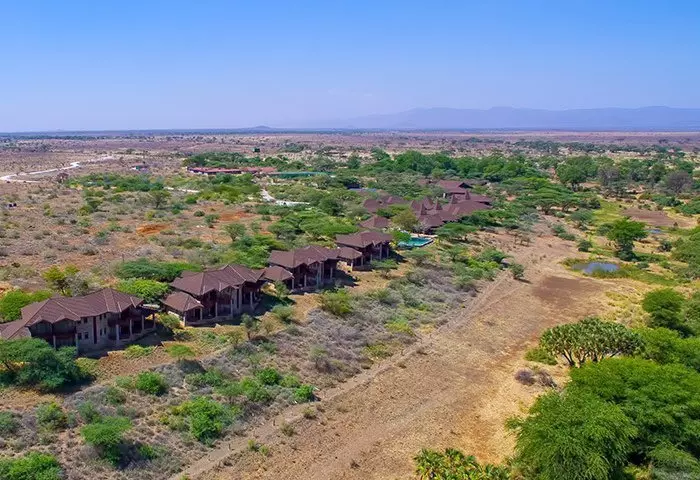Ashnil Aruba Lodge ligger i hjärtat av Tsavo East National Park, nära Aruba-dammen som är byggd tvärs över floden Voi.