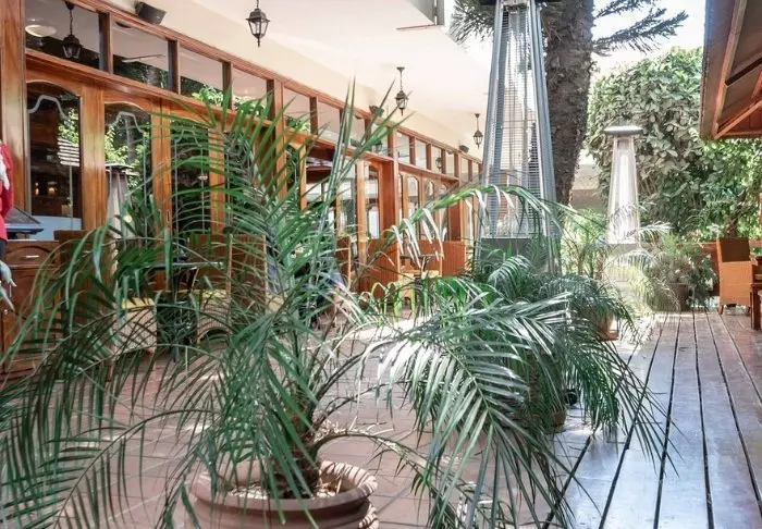 Hotellet har nästan utformats som ett litet komplex, mitt i det som är en trädgård med en pool i ena änden. Här hittar du solstolar, och bredvid dem ligger en charmig bar. Hotellet har också tre restauranger, en lounge och ett gym – och det bästa av allt är att det bara är 15 minuter bilresa till flygplatsen, vilket gör detta till den perfekta platsen att tillbringa natten på när man anländer eller ska åka hem.