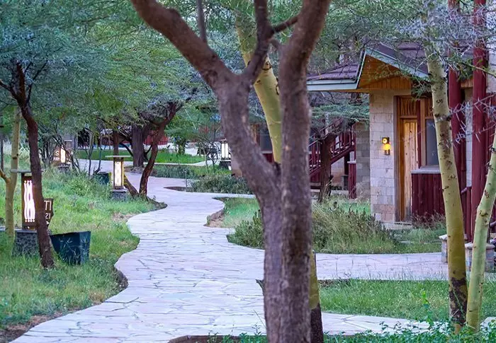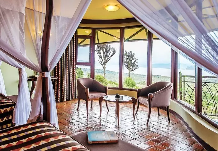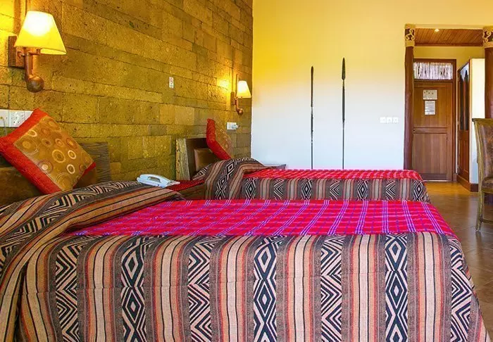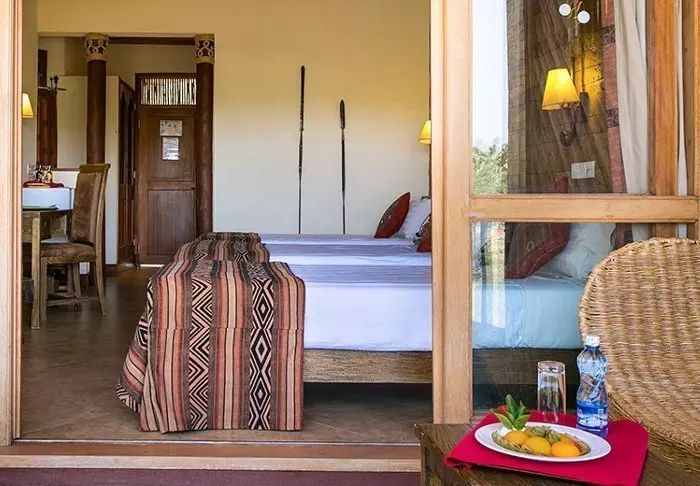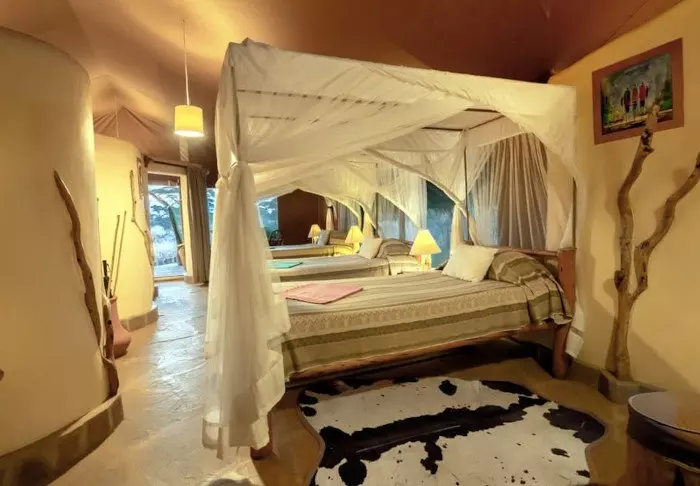 Lodgen består av 7 små tvåvåningshus, som alla innehåller 10 rum. Rummen är trevligt inredda i typisk afrikansk stil. De har alla eget badrum, loftsvit, te- och kaffekokare men viktigast av allt: en stor terrass eller balkong där man har utsikt över slätterna och djurlivet.