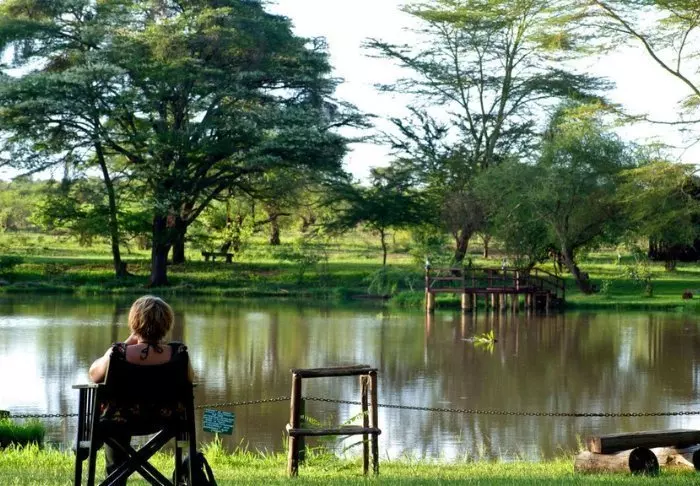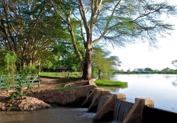Lägret ligger vid floden Sante och gräsmattan framför lägret bjuder på en otroligt vacker utsikt mot Kilimanjaro. Floden har bildat en damm framför lägret som lockar till sig massor av fåglar, medan flodhästar och krokodiler glatt vältrar sig i vattnet (och på kvällen på gräsmattan framför lägret).