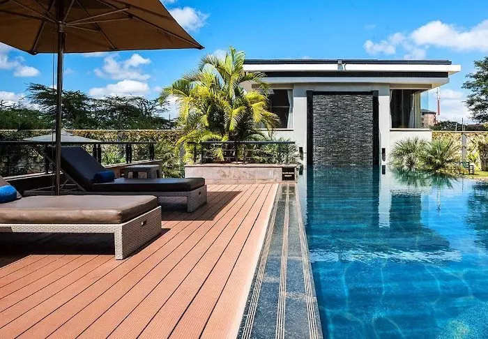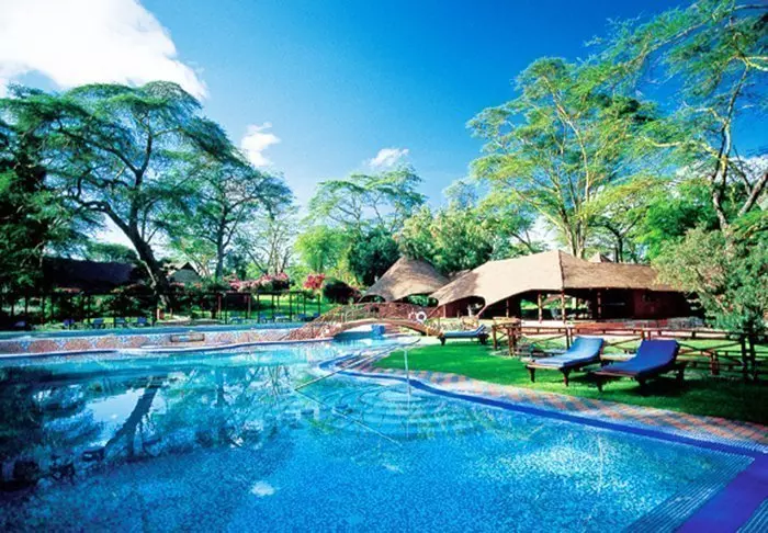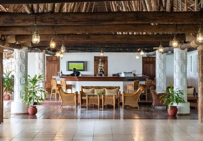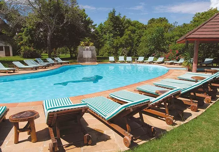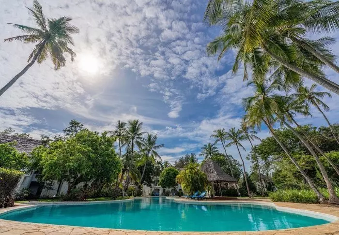 Hotellet kan skryta med att de har den djupaste poolen i hela Kenya. Den är 5 meter djup, vilket betyder att det är en riktigt bra plats för att lära sig att dyka. Solstolarna är utspridda över hela området så du kan välja själv om du vill ligga på stranden, vid poolen eller under en palm på den gröna gräsmattan.