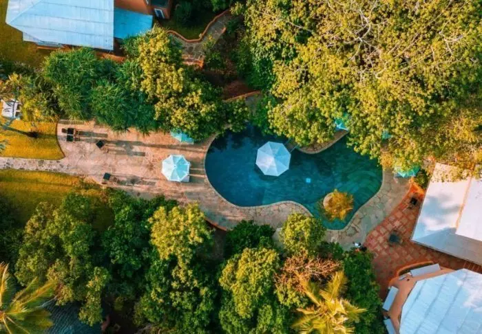 Även från poolen har du en vacker utsikt, och om kroppen är mörbultad efter timmarna i safaribilen, kan den lilla spaavdelningen erbjuda en skön massage.