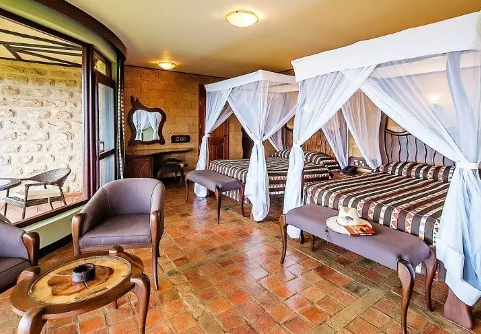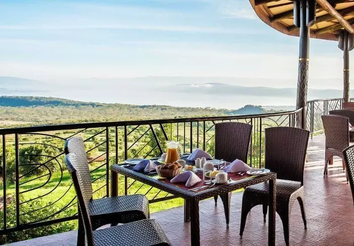 Alla rum har egen terrass, som bjuder på en vacker utsikt över slätterna vid foten av Kilimanjaro.