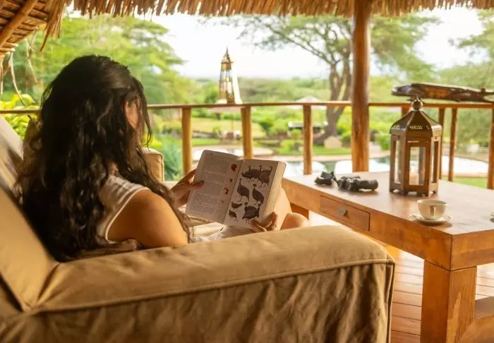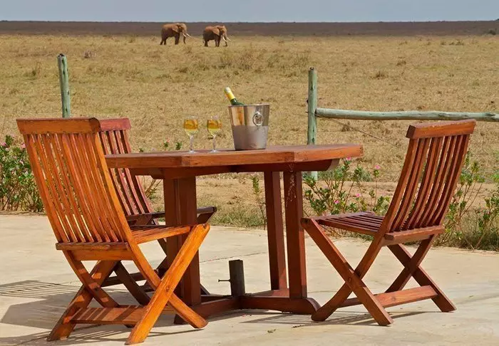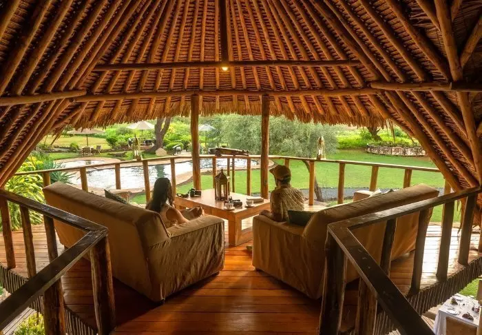 Det finns totalt 56 rum på lodgen, som alla har egen veranda. Några rum har utsikt mot vattenhålet, andra mot Chyulu Hills.