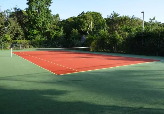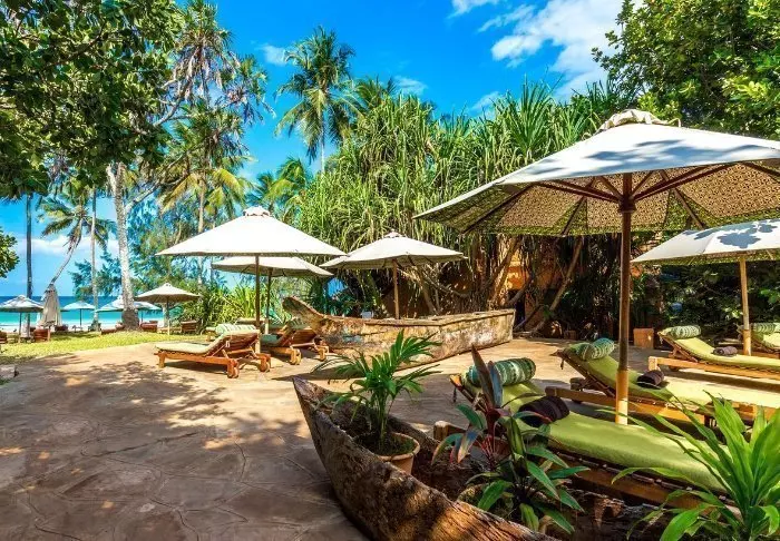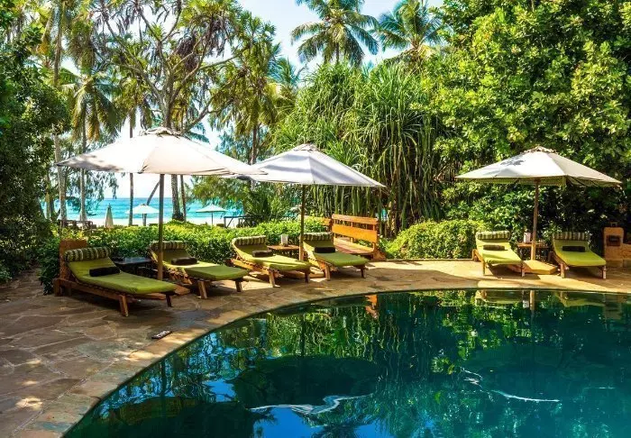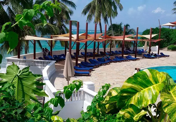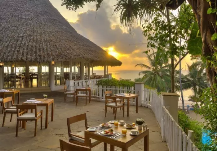 Resorten omges av en enorm tropisk trädgård och ligger precis vid de vita sandstränderna och den turkosblå Indiska ocenanen, där vattnet är lugnt tack vare korallreven som dämpar vågorna.