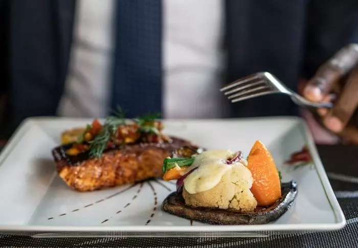 Måltiderna äter du i restaurangen – en stor del av grönsakerna odlas lokalt och rätterna tillagas från grunden.