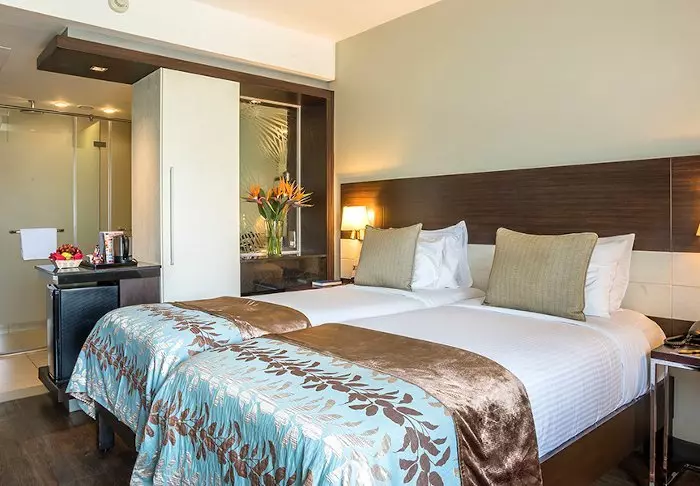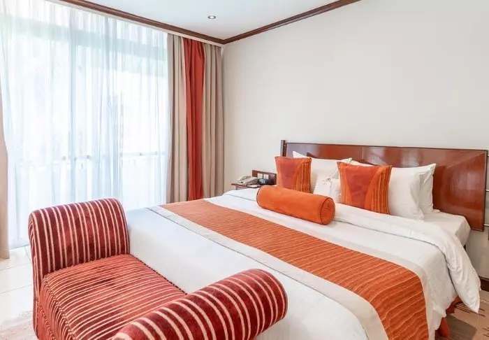 Hotellet har 96 rum som alla är inredda i en tilltalande blandning av västerländsk och afrikansk stil. Alla rum är utrustade med minibar, värdeskåp, platt-TV, aircondition, hårtork och möjlighet att göra kaffe/te.