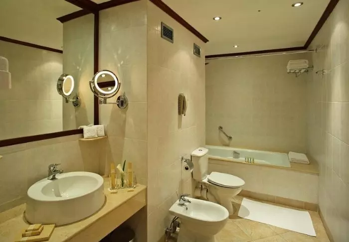 Rummen ligger i små klungor med 6 stycken i vardera ”hus”, som alla har två våningar. Alla ”hus” är anslutna till varandra och huvudbyggnaden med en rad upphöjda gångvägar som är fint upplysta om kvällarna. Rummen är rymliga och alla har eget badrum och veranda.