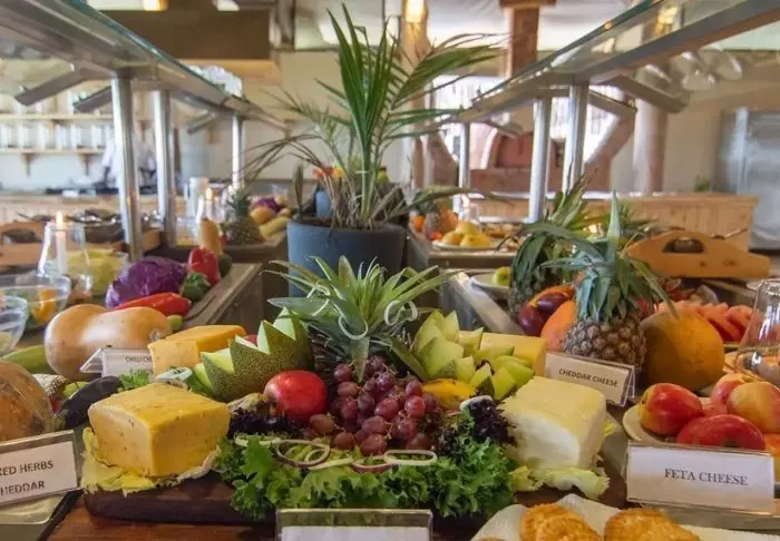 När du börjar bli hungrig finns det fyra olika restauranger att välja mellan: två bufférestauranger och två à la carte-restauranger. Dessutom finns det två barer, där du kan njuta av en drink eller lite färskpressad juice i skuggan.