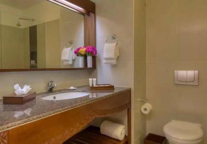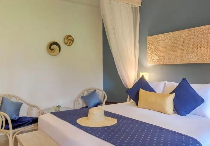 Resorten består av 165 rum, som alla har sin egen balkong eller terrass. Rummen är placerade i stugor i natursköna omgivningar. Samtliga rum har gratis wifi, minibar, te- och kaffefaciliteter, myggnät och aircondition.